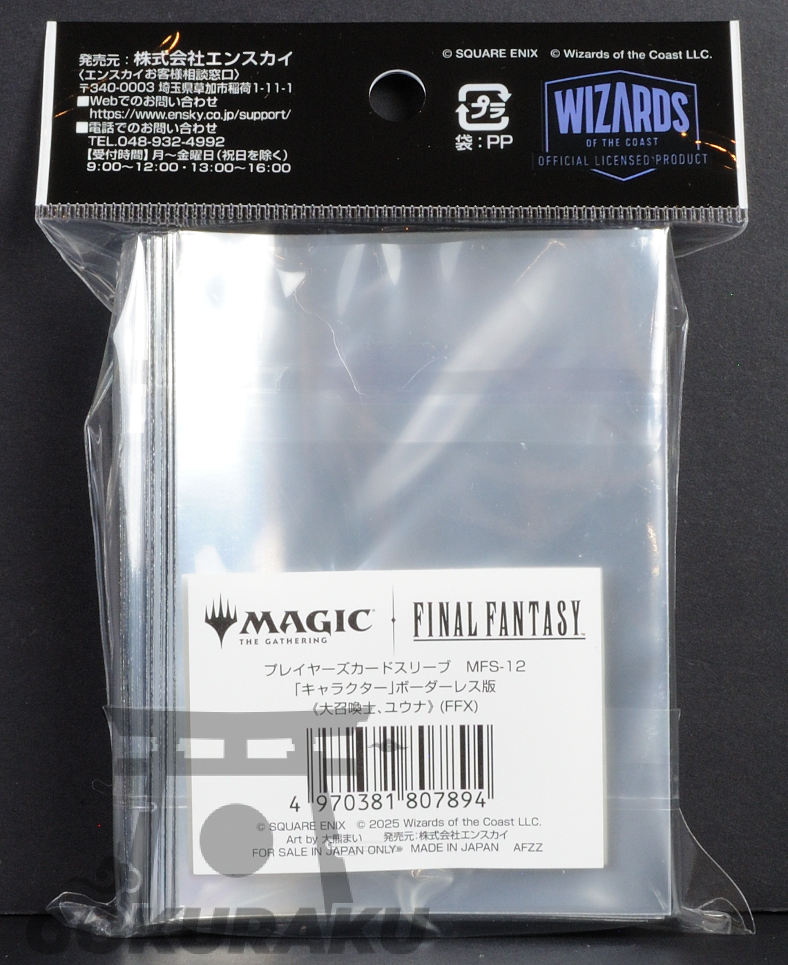 Keep your most prized cards safe in style with Ensky’s Magic: The Gathering series! These ones feature beautiful art of Yuna from Final Fantasy X.es Each pack contains 80 sleeves at a standard size of 67 x 92mm.